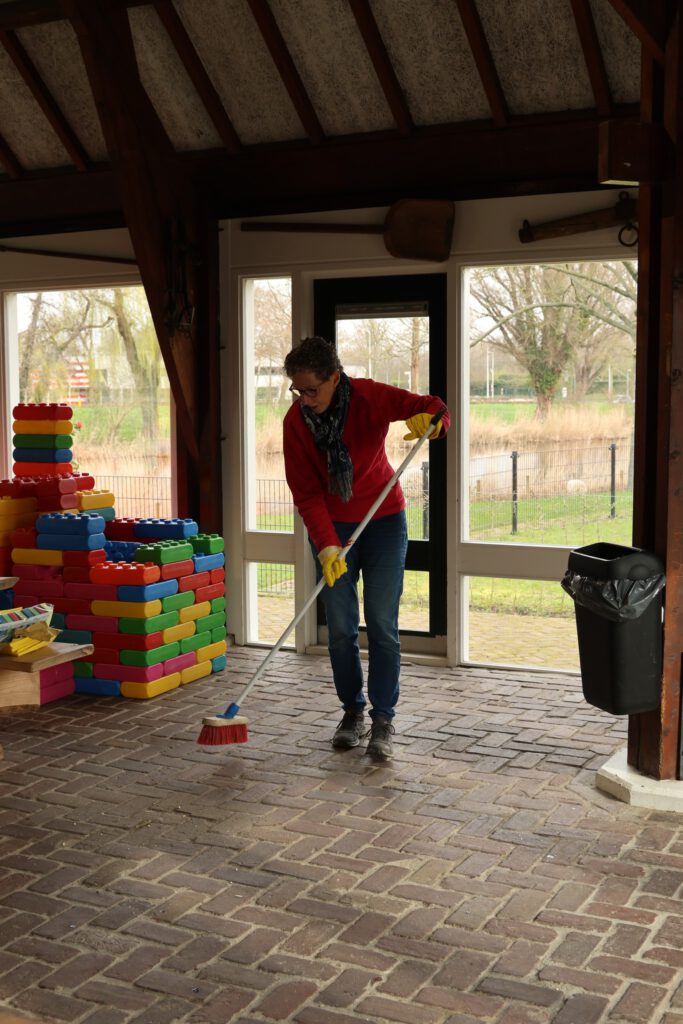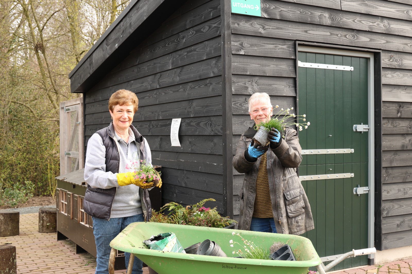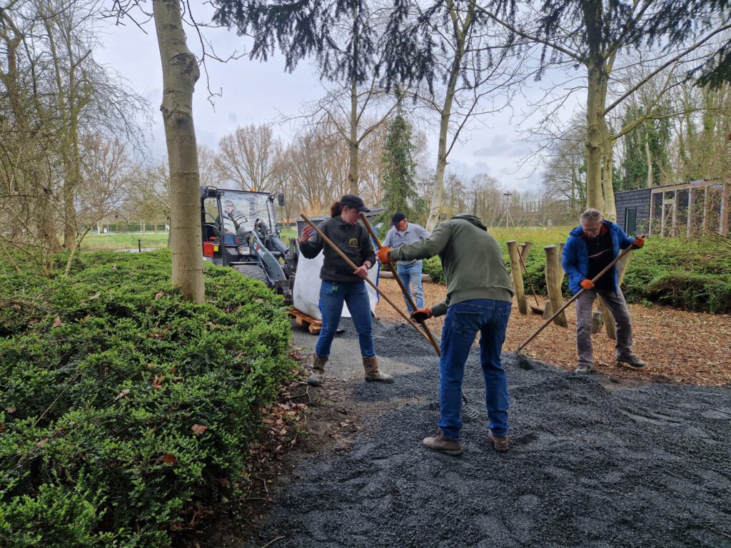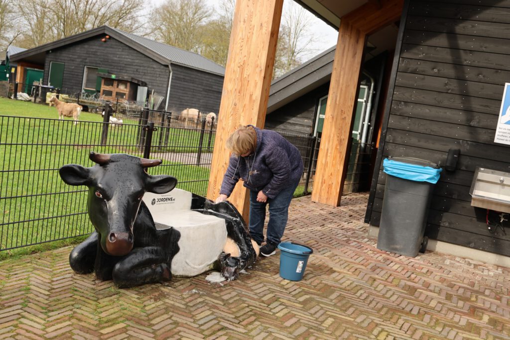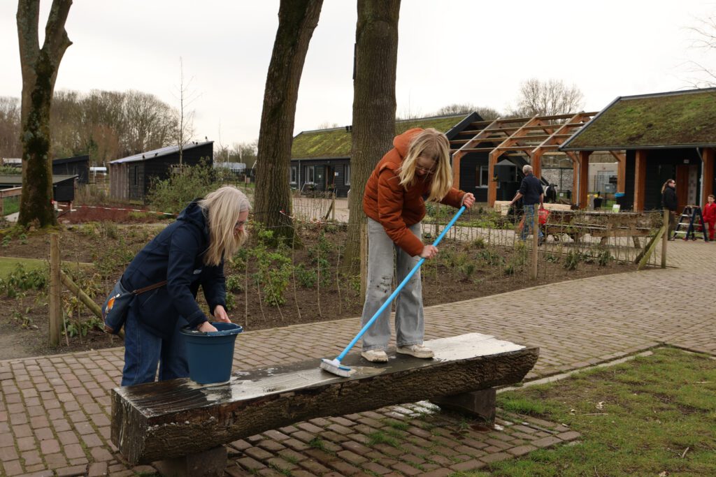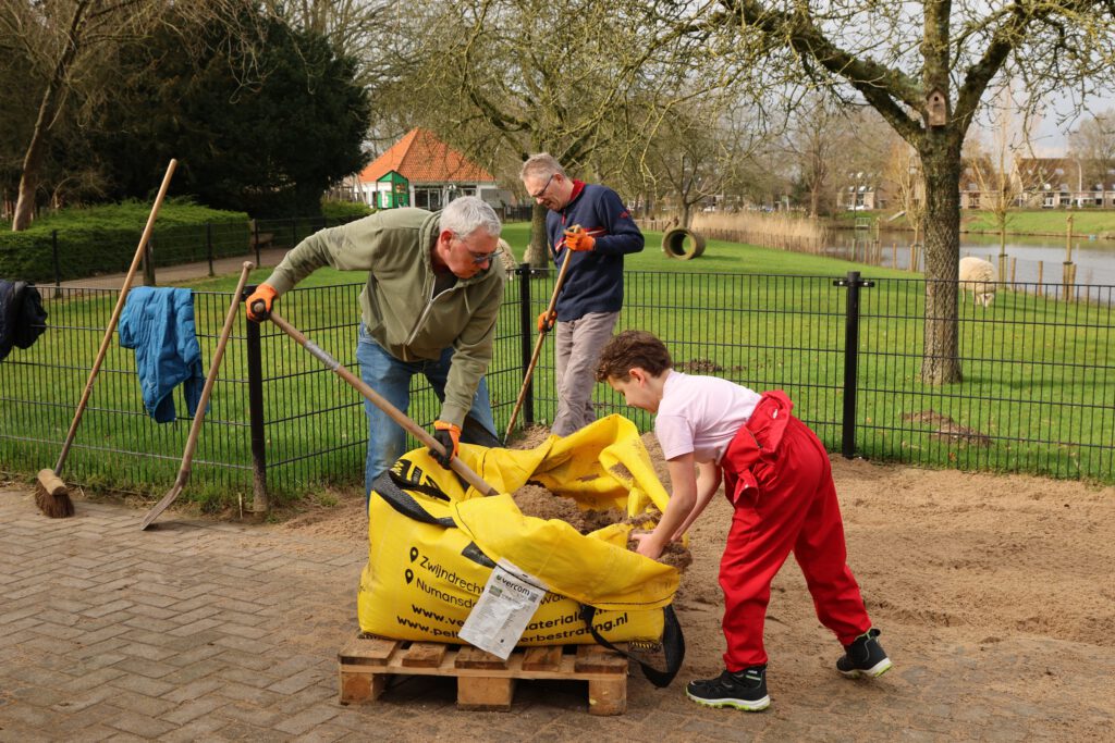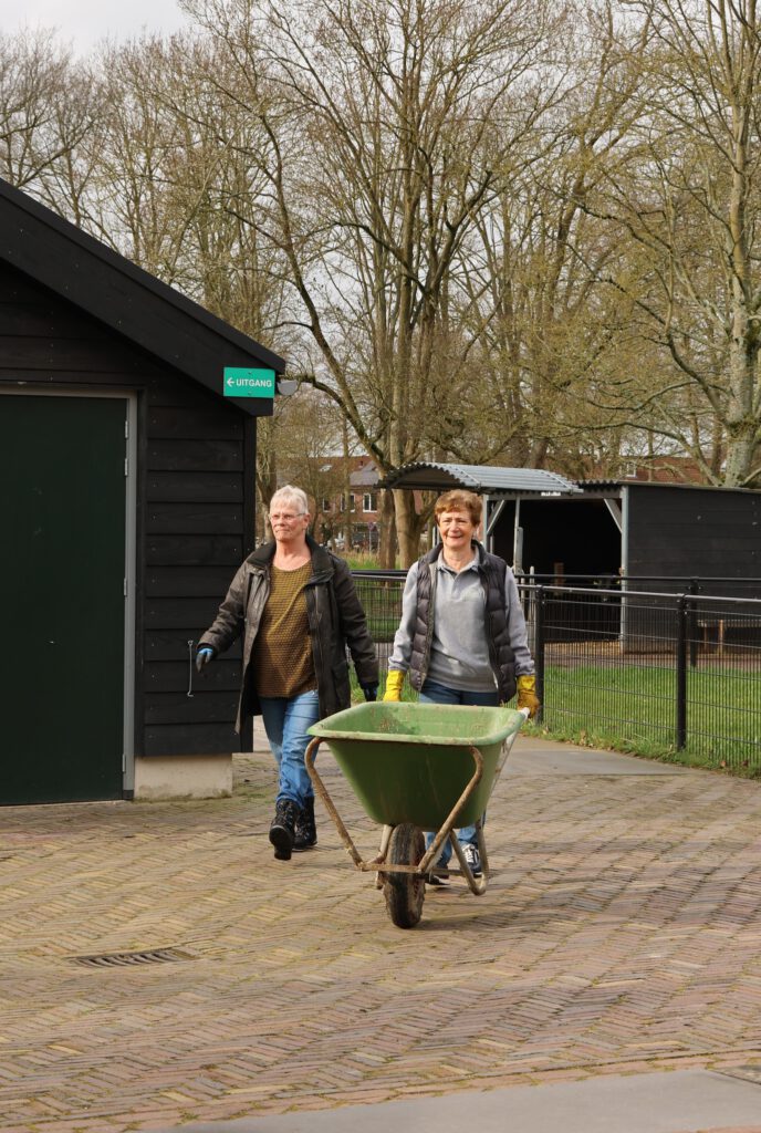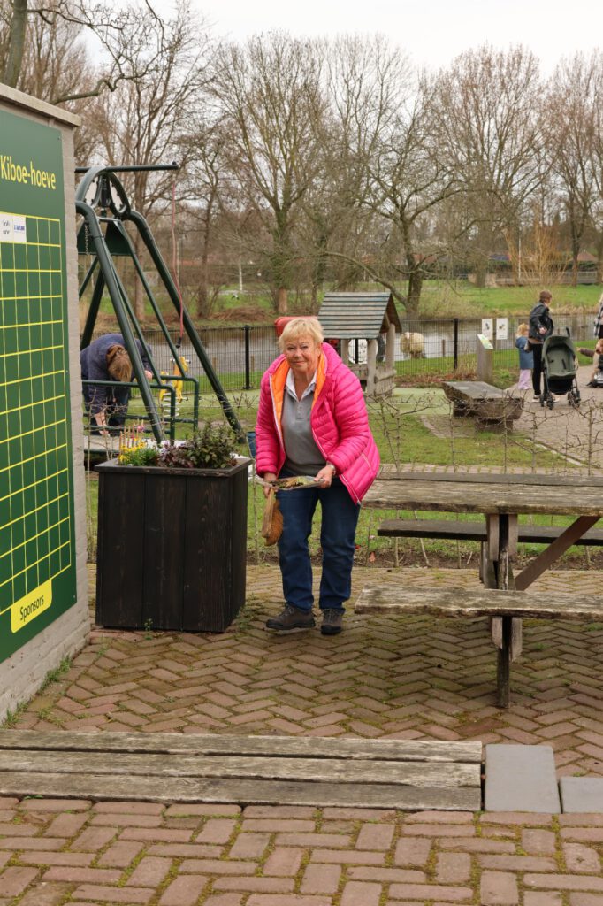 Afgelopen zaterdag was het voor de zesde keer NLdoet op de Parkboerderij de Kiboe-hoeve in Zwijndrecht. Er was weer een flinke lijst met klussen zoals de zwarte olivijn paden ophogen, de bloembakken van nieuwe plantjes voorzien, de kunstkoeien, de rolstoelschommel en de houten banken schoonmaken. Het rode puntdakgebouw heeft een grote schoonmaak beurt gehad. Daarnaast zijn er nieuwe wegwijs palen geplaatst en een aantal vogelhuisjes opgehangen.