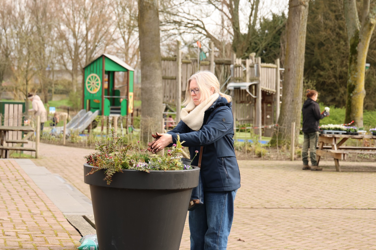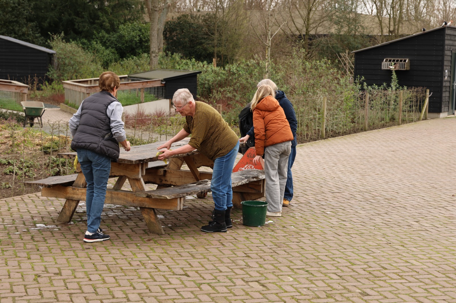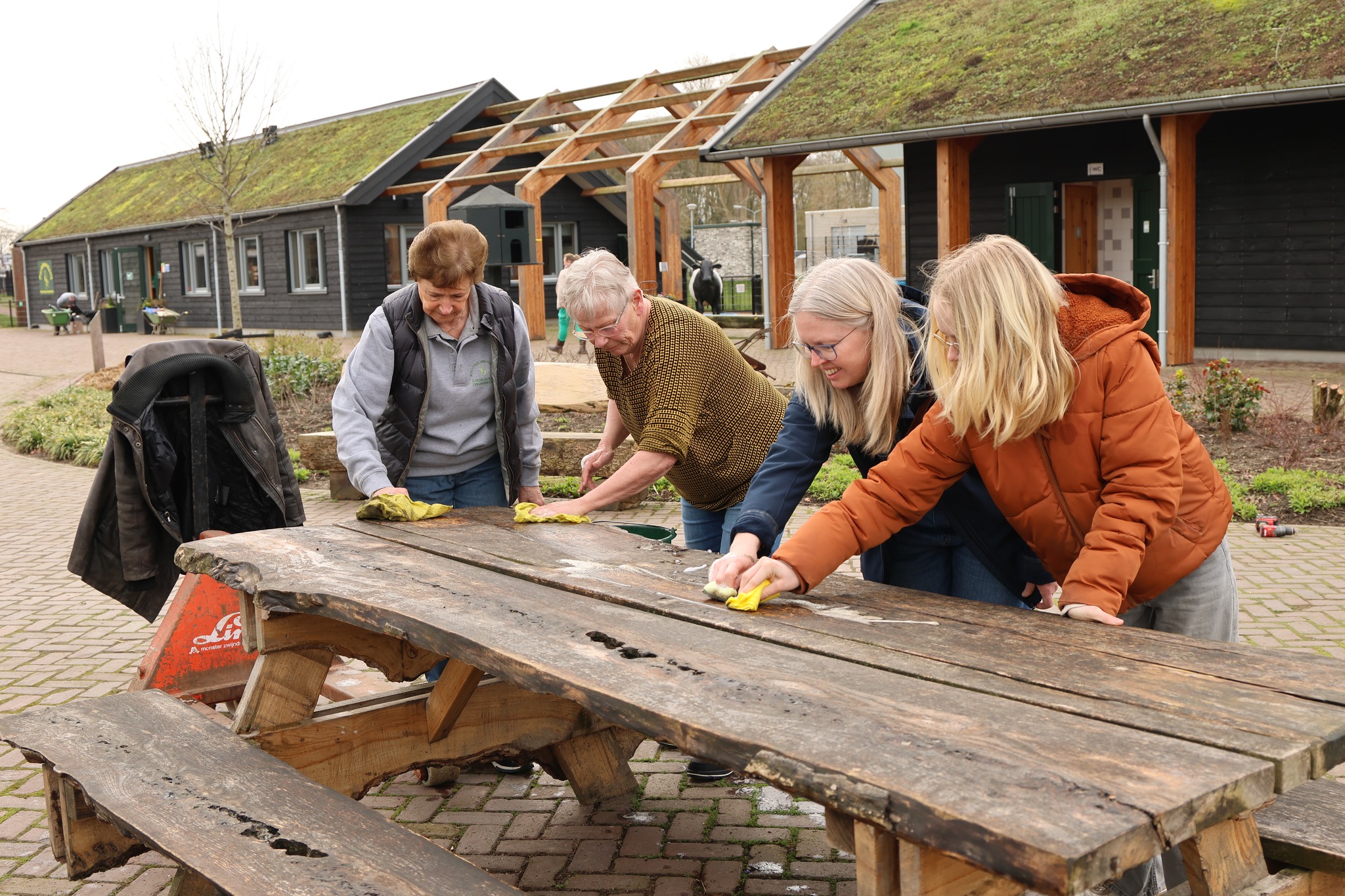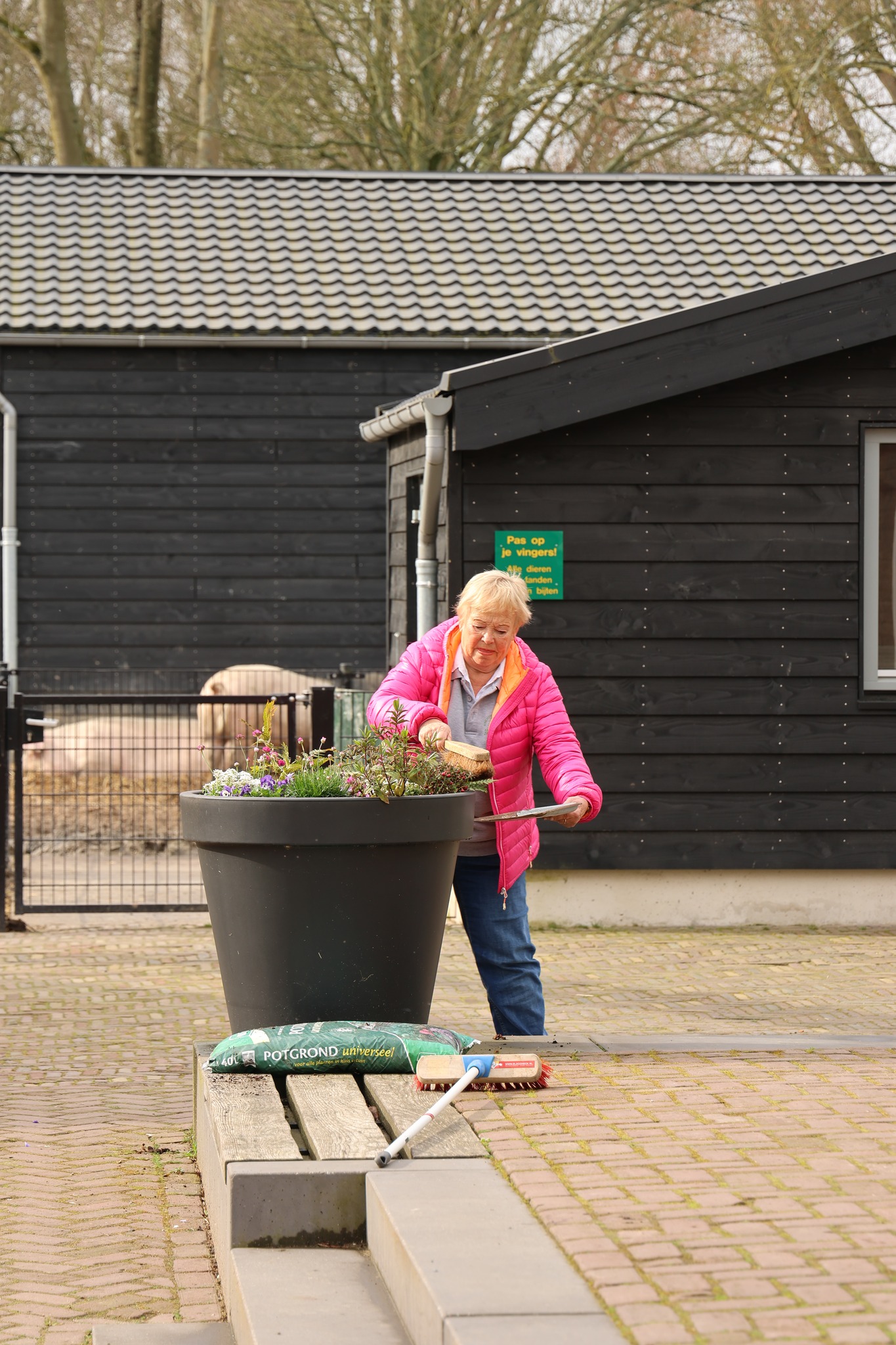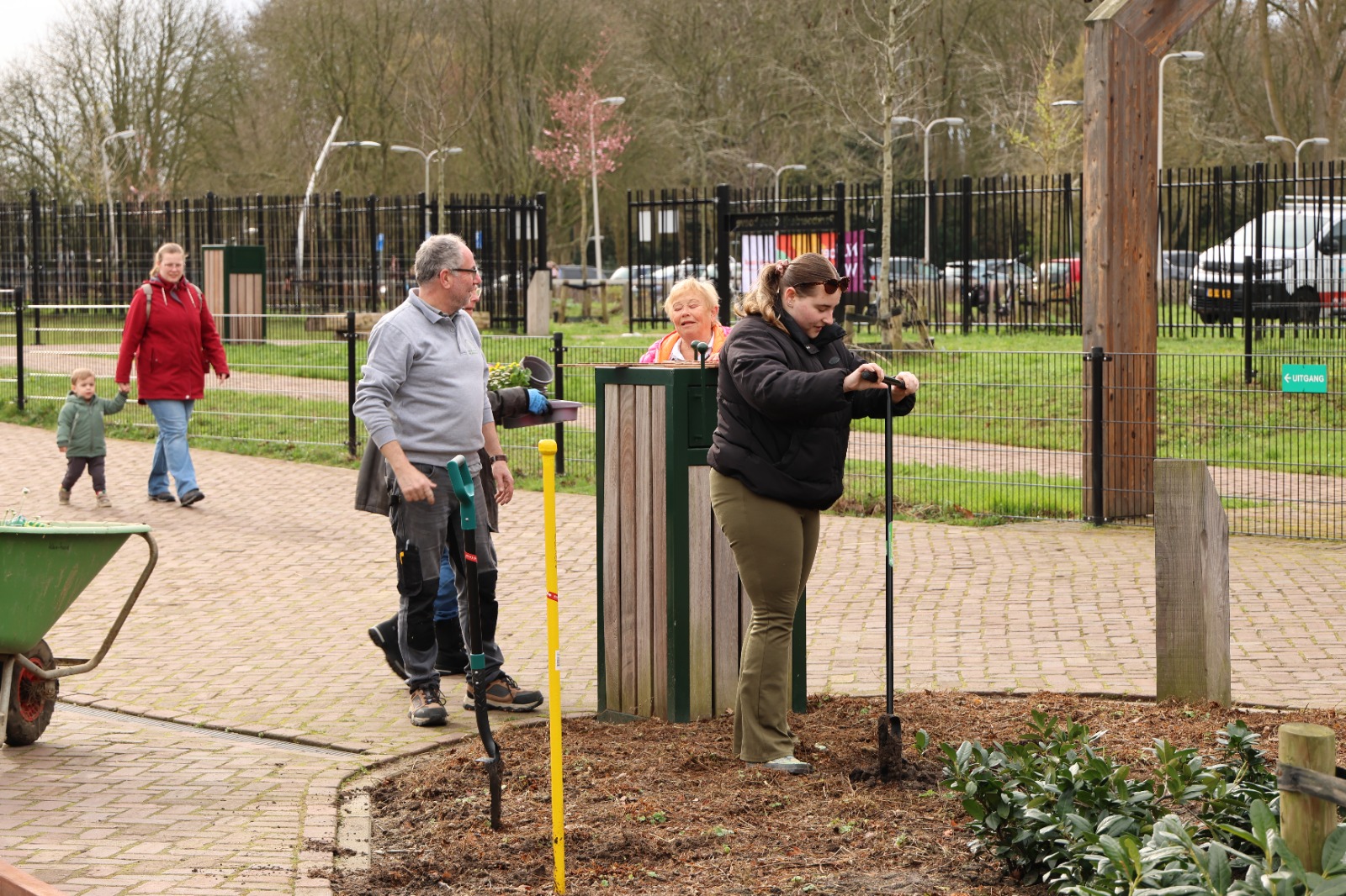 Afgelopen zaterdag was het voor de zesde keer NLdoet op de Parkboerderij de Kiboe-hoeve in Zwijndrecht. Er was weer een flinke lijst met klussen zoals de zwarte olivijn paden ophogen, de bloembakken van nieuwe plantjes voorzien, de kunstkoeien, de rolstoelschommel en de houten banken schoonmaken. Het rode puntdakgebouw heeft een grote schoonmaak beurt gehad. Daarnaast zijn er nieuwe wegwijs palen geplaatst en een aantal vogelhuisjes opgehangen.
